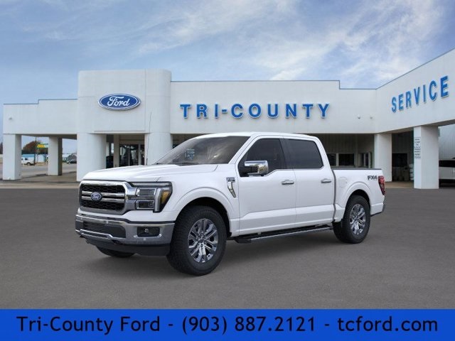 2025 Ford F-150 in Star White Metallic Tri-Coat exterior and Black interior, This F-150 comes with popular options such as, has passed our detailed safety inspection performed by our certified technicians, 4WD.